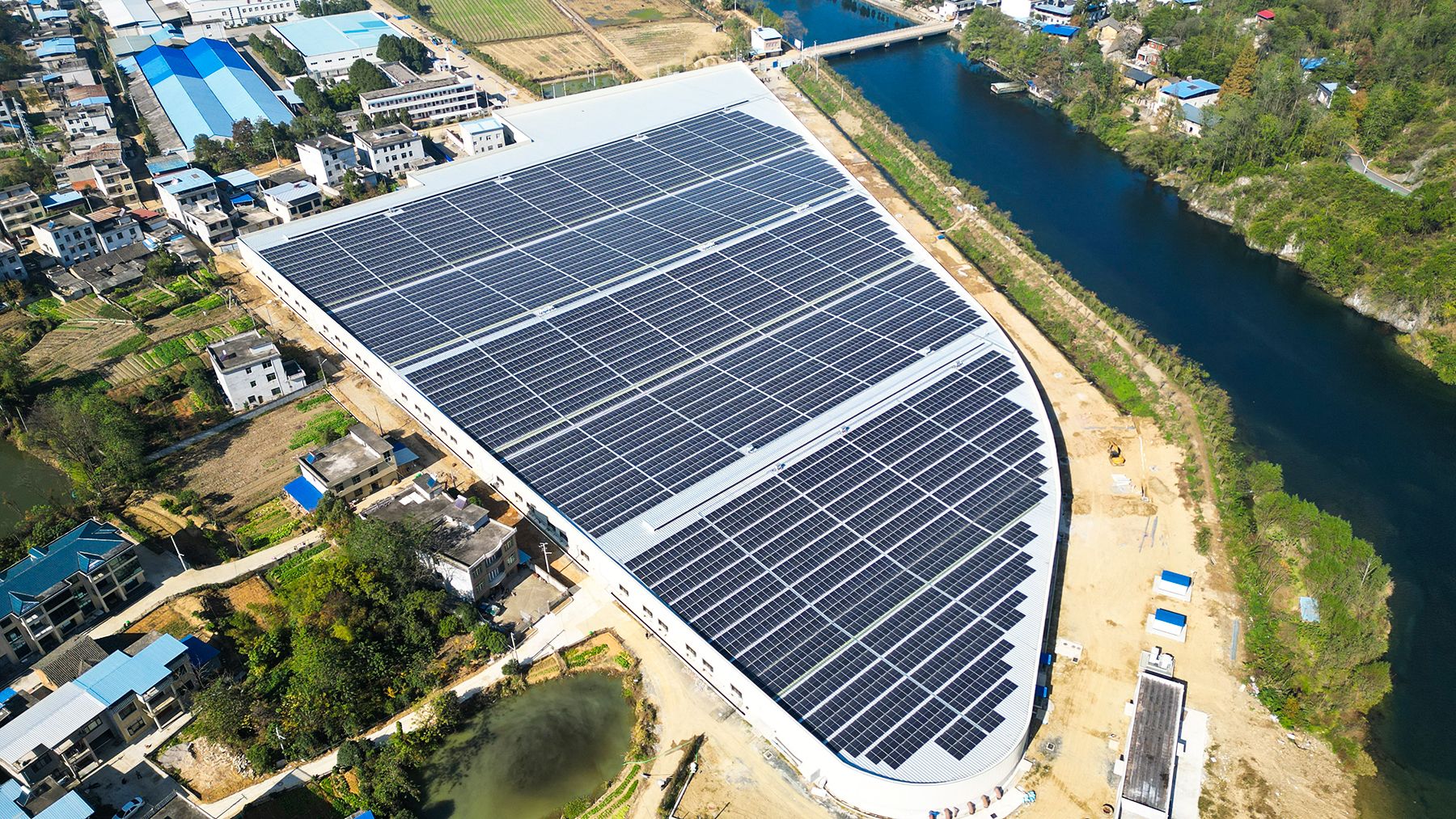 光伏项目是青山现代鲟鱼产业园的一大亮点。“光伏项目建成后,可以满足养殖车间、精深加工车间和冻库的用电需求,目前仅使用产电量的20%。”湖北青鲟生物科技有限公司光伏项目负责人张关昊说,架设在养殖车间屋顶的光伏板不仅能隔热保温,为鲟鱼提供良好的生长环境,还为园区后期用电做足了准备。