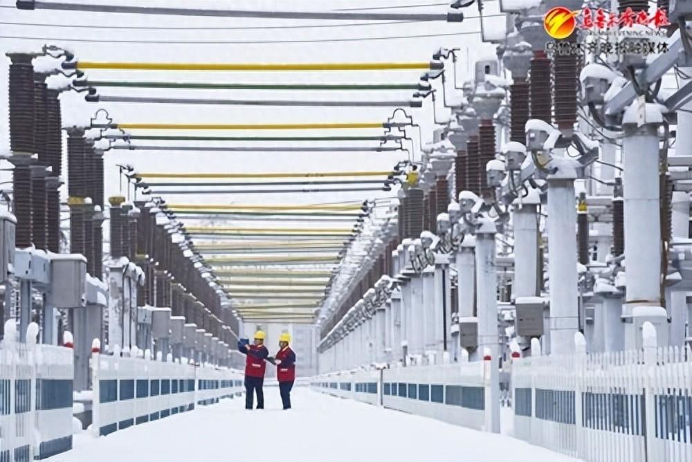 在220千伏三宫变电站内,国网乌鲁木齐供电公司三宫变电运维班运维人员正在对站内设备进行检查测温,保障寒潮天气下电网安全稳定运行。通讯员徐天摄