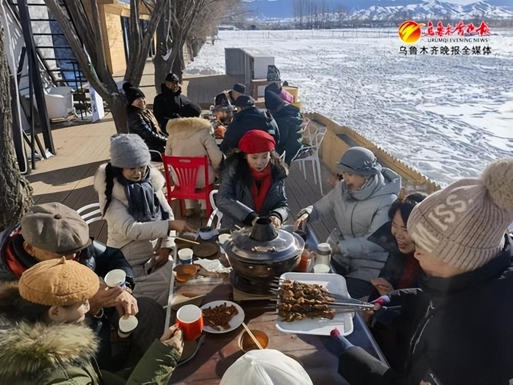 12月17日,在乌鲁木齐县永丰镇上寺村阡陌乡宿营地,游客正在体验雪地火锅美食的乐趣。记者陈岩摄