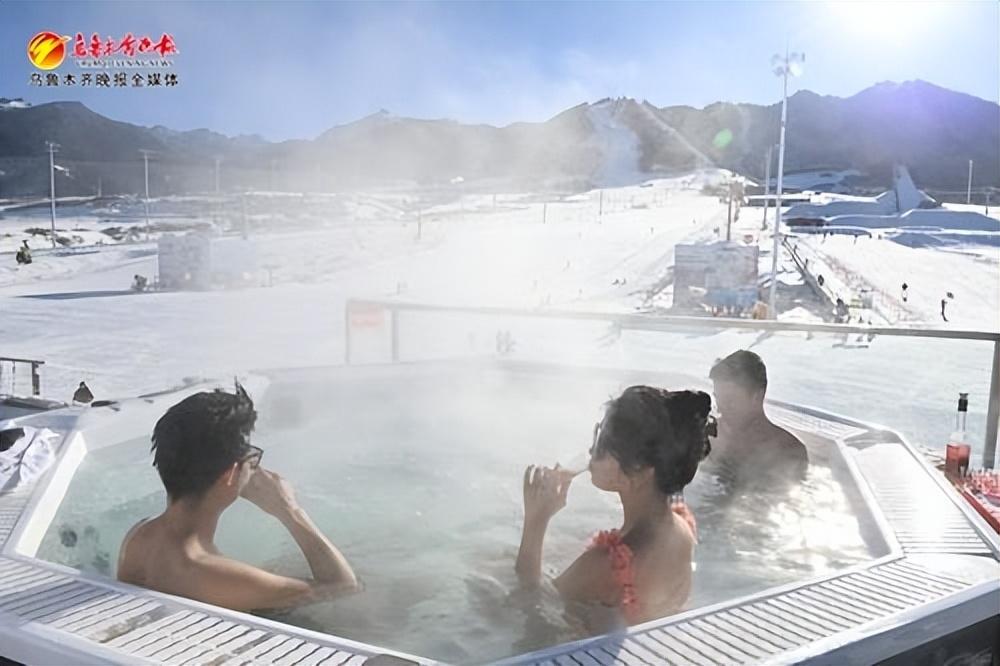冰天雪地里,身体被40摄氏度的温水包裹,是种怎样的碰撞?这个周末,丝绸之路山地度假区的室外恒温泳池里,体验“冰火两重天”的游客也不少。