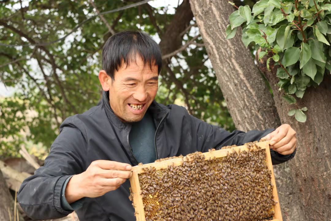 “今年看到村上养蜜蜂,便积极响应村上号召,跟着养了13箱蜜蜂,让我又多了一个增收致富的渠道。”买德军还将家门口的空地种上了花,美化环境的同时,让蜜蜂有了蜜源,产出的蜂蜜香甜可口。今年通过销售蜂蜜,收入了1万元左右,再加上每年靠种植青贮玉米和养羊收入,幸福生活也如同蜜一样越来越甜。