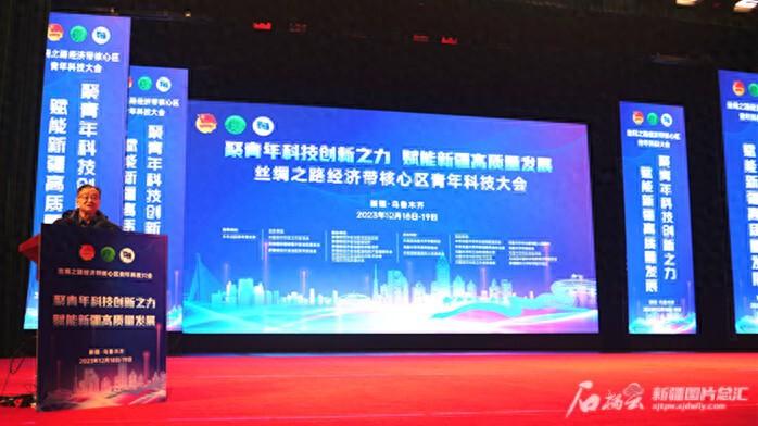 12月18日,自治区科学技术厅党组成员、副厅长刘智敏在丝绸之路经济带核心区青年科技大会做宣讲。哈拉马提·海拉提摄