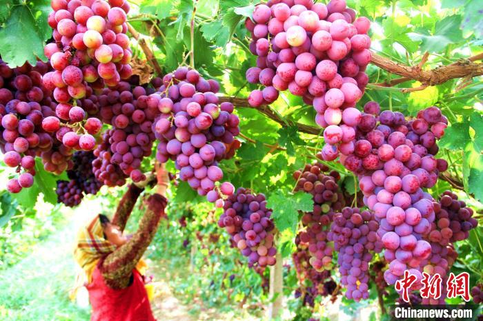 敦煌市莫高镇农民在采摘葡萄。(资料图)张晓亮 摄