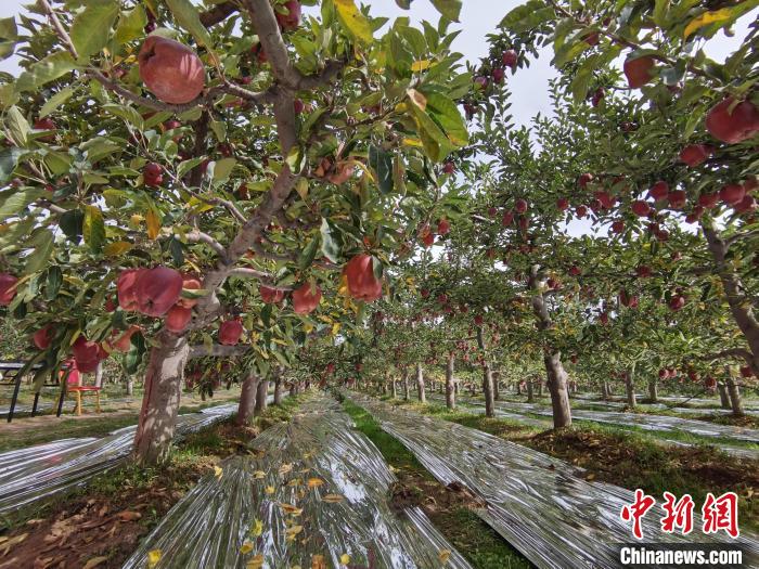 2021年9月8日,“2021年天水花牛苹果品牌推介”在甘肃天水市麦积区南山万亩花牛苹果基地举行。张婧 摄