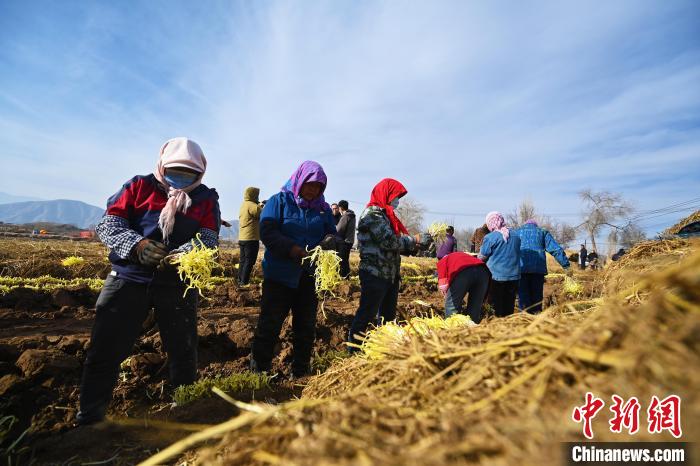 兰州“金凰后”韭黄开镰收割:麦草下长出“黄金芽”