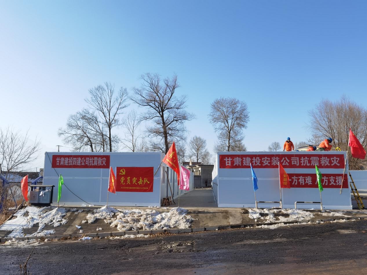 在各个安置点,甘肃建投旗下企业施工人员夜以继日,冒着近零下二十度的严寒,热火朝天地进行卸车、吊装,确保了施工进度