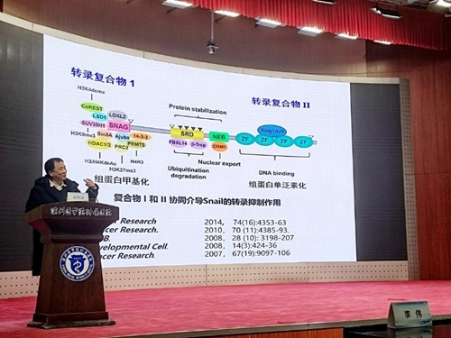 本次论坛旨在加强与高层次海智人才交流,以临床问题为导向,基础研究为核心,聚焦肿瘤前沿科学问题,促进基础临床交叉融合。美国肯塔基大学医学院周斌华教授、浙江大学医学院董辰方教授、复旦大学附属闵行医院王立顺教授、山东大学刘发保教授、上海交通大学医学院侯照远教授、滨州医学院附属医院医学研究中心邓炯教授等专家学者,分别对乳腺癌、肺癌、结直肠癌中的肿瘤免疫微环境,细胞代谢重编程,新靶标的发现,肠道菌群在严重炎症以及免疫应答中的作用,肿瘤模型的创制等科研领域作了精彩报告。