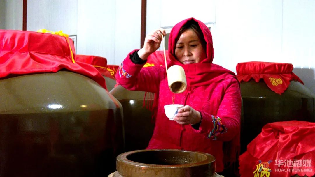 李霞:“刚开始的时候做得小,几缸缸地做着。慢慢我想做大一点,就从外面请了黄酒专家来给我们指导地做,产品慢慢做得越来越好。经过十年的努力,还做了一款羊羔酒,在市场上口感也好,销路也广。现在我们又做了线上销售,从直播开始,想把这个做大,销售到全国各地。”