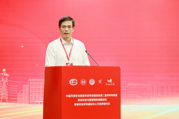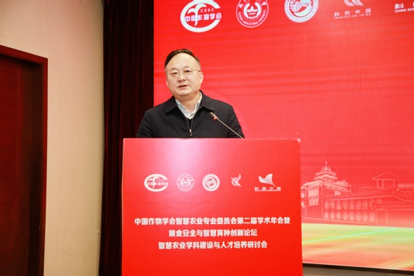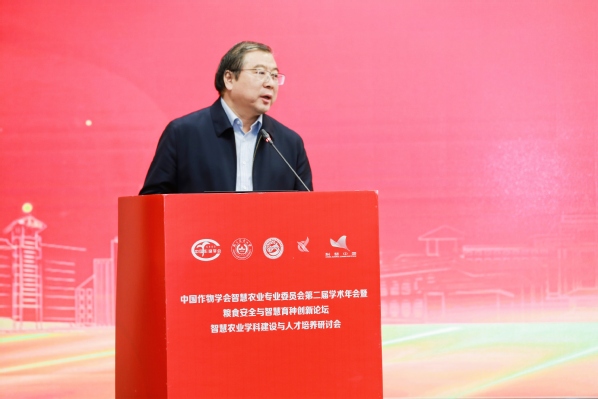 刘录祥代表中国作物学会致辞。作为中国作物学会最年轻的分支机构,刘录祥充分肯定了智慧农业专委会自成立以来所取得的各项成绩,他期望智慧农业专委会在推进我国作物科技领域的智慧农业基础研究、技术创新、人才培养及其产业发展方面起到领头羊的作用。