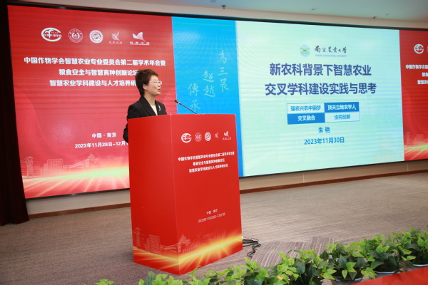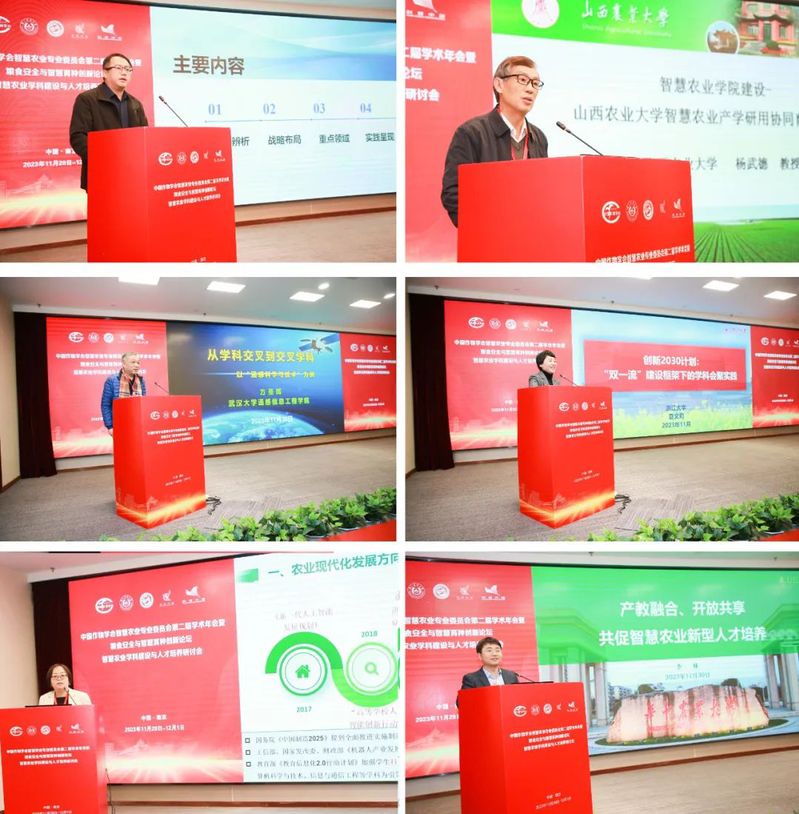 11月29-30日,中国作物学会智慧农业专业委员会(下称“智慧农业专委会”)第二届学术年会暨粮食安全与智慧育种创新论坛、智慧农业学科建设与人才培养研讨会在南京农业大学召开。全国政协科教卫体委员会副主任、民盟中央副主席、自然资源部原副部长、南京农业大学智慧农业研究院院长曹卫星,中国作物学会秘书长、中国农业科学院作物科学研究所党委书记刘录祥,中国作物学会副秘书长程维红,江苏省教育厅副厅长杨树兵,南京农业大学副校长董维春、王源超,河南科技大学副校长侯小改,山西农业大学原副校长杨武德,中国农业大学校长助理曲瑛德等出席会议。全国50余家高校、科研院所和企业的200多位代表参加了大会。南京农业大学副校长、智慧农业专委会会长、“科创中国”沁农智慧农业专业科技服务团团长朱艳主持智慧农业学科建设与人才培养研讨会。