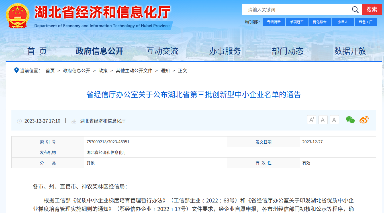 咸安区20家企业成功申报2023年度创新型中小企业