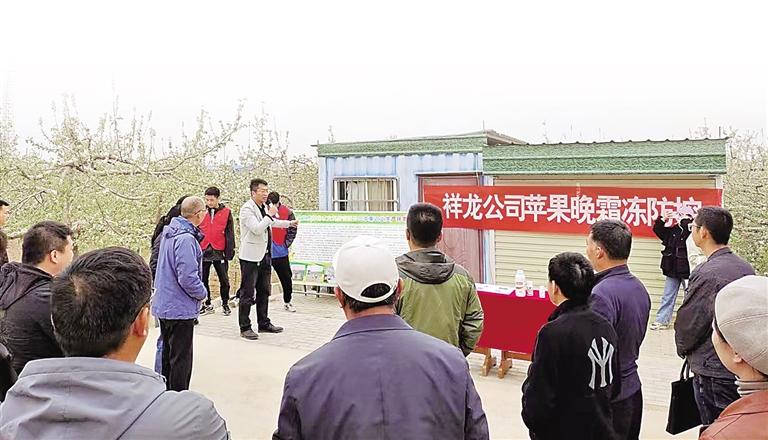 尹龙为种植户讲解苹果晚霜冻防控技术。