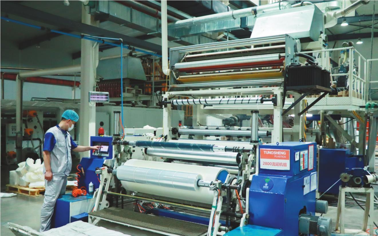 东盛集团流延车间里生产正忙,争取早日交付出口订单。庞凯仁 摄