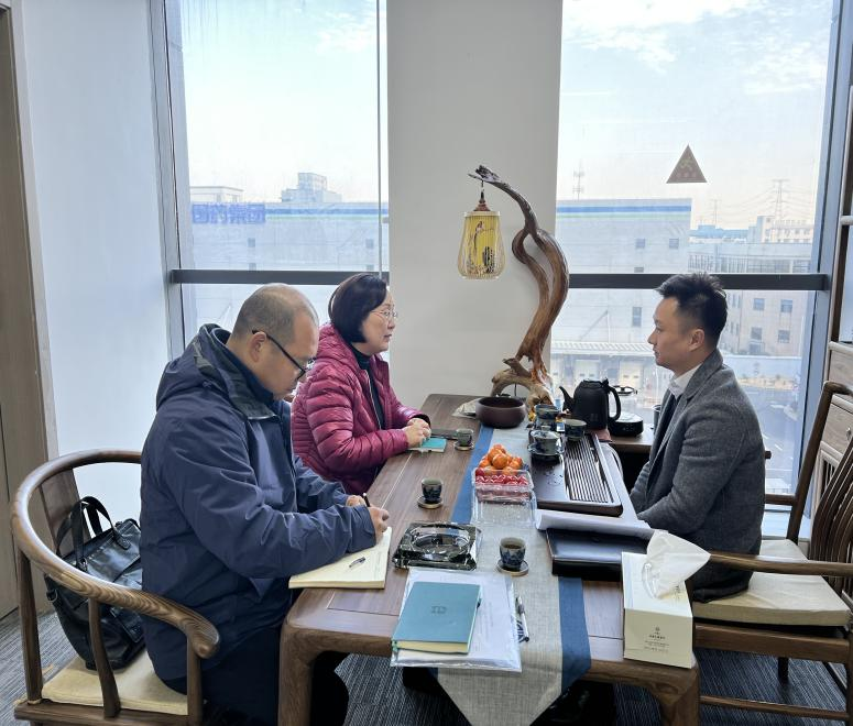 第四站:最后一站走进浙江佑谦特种材料有限公司,得到刘磊总经理、陈梦茹技术副总、徐廉久市场总监、李劲营销副总的热烈欢迎。