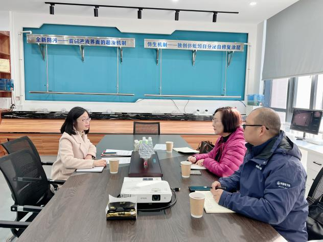 吴晓明秘书长表示,维成公司是全国首家获得中国船级社水性船舶涂料CCS认证的企业,船舶产业是个庞大的市场,企业要把握甬舟区域协同发展的契机,盖科公司的自清洁涂层材料产品可用于船舶防污,吴秘书长当场为二家企业之间进行了上下游对接。同时,吴秘书长建议企业多关注国家一带一路的政策和欧美市场,2024年协会将组织多场供需产业链对接会,积极参加协会组织的各项活动结识人脉,让产品走出去。