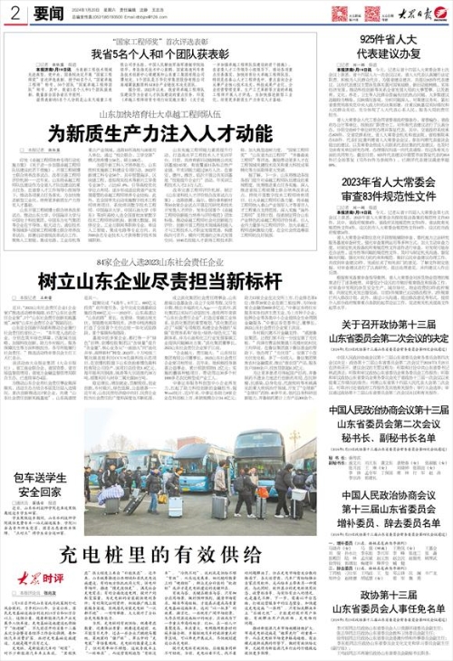 大众日报:山东加快培育壮大卓越工程师队伍 为新质生产力注入人才动能