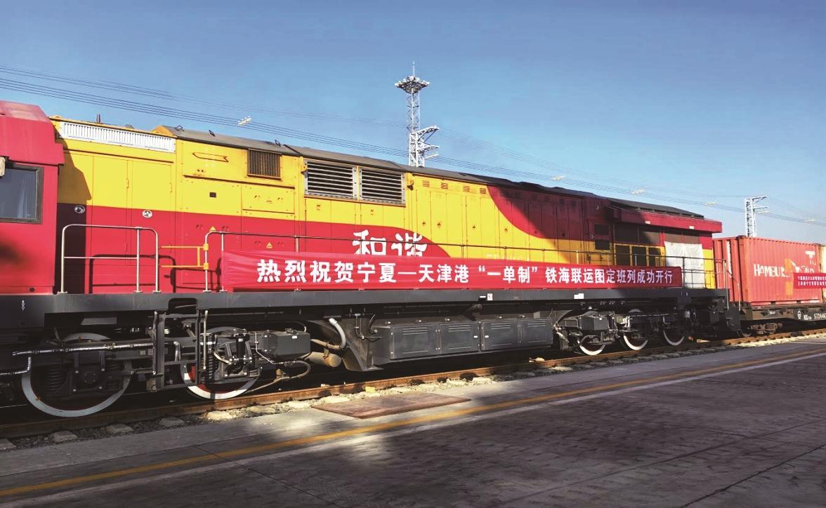 宁夏—天津港“一单制”铁海联运图定班列。资料图片