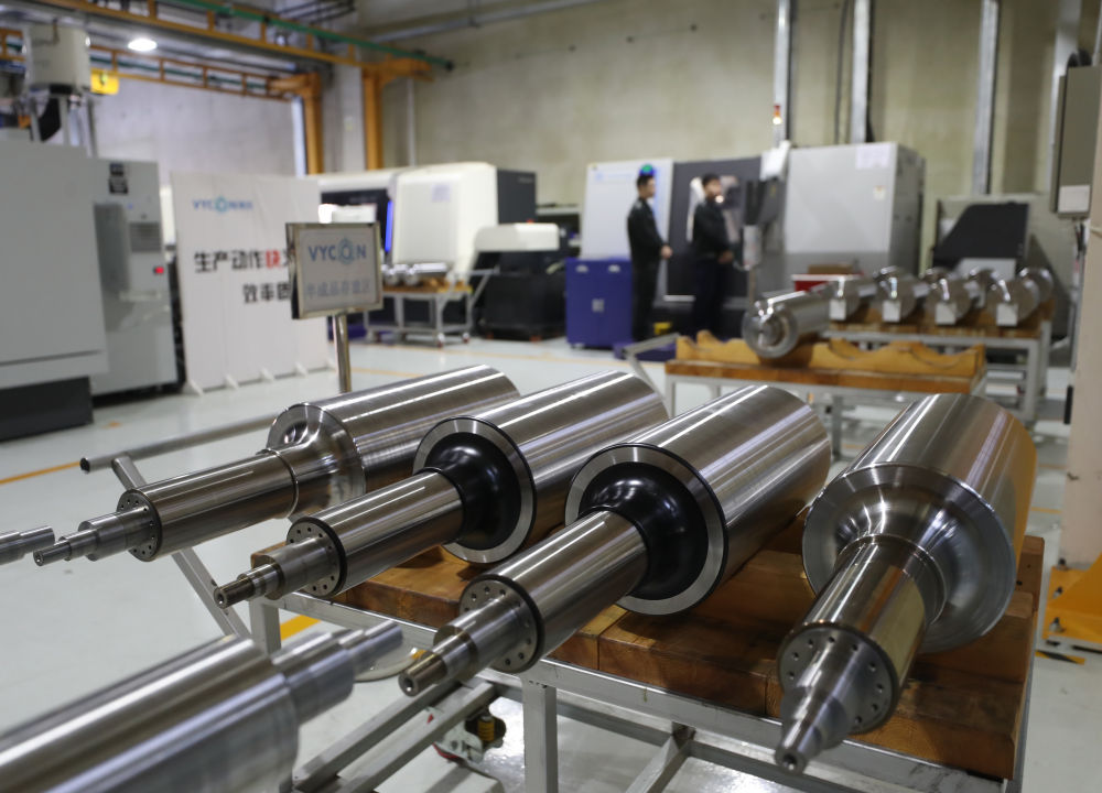 在沈阳微控新能源技术有限公司车间拍摄的由航天级合金钢材制成的转子(2023年11月29日摄)。新华社记者 杨青 摄