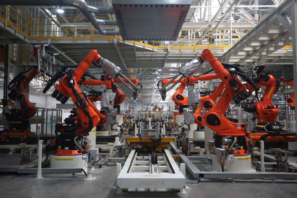 大众安徽模块化电驱动平台工厂车身车间一角。(2023年5月29日摄)新华社记者 杜潇逸 摄