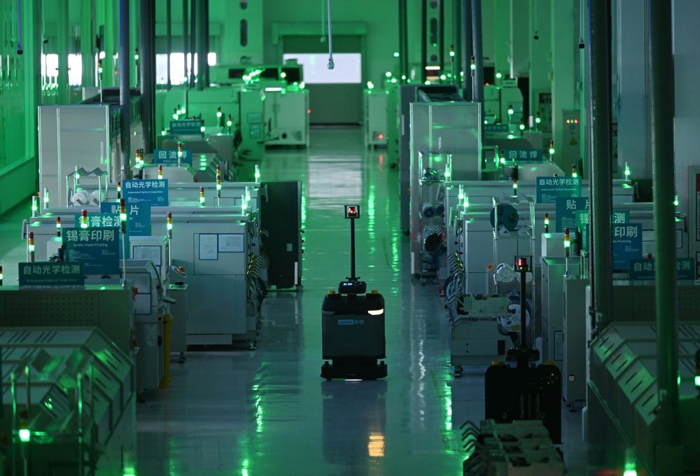 2023年11月6日,位于天津港保税区空港经济区的联想集团创新产业园(天津)全面落成。这是当日拍摄的联想集团创新产业园(天津)生产线一角。新华社记者 赵子硕 摄