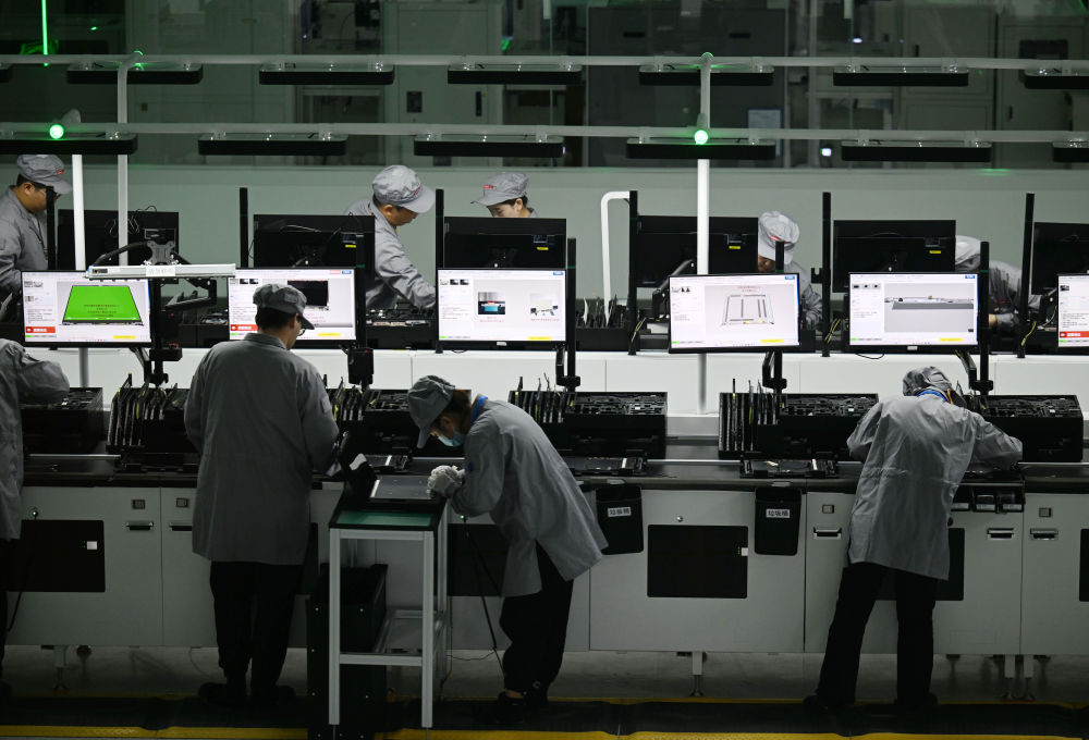 2023年11月6日,工作人员在联想集团创新产业园(天津)笔记本生产线作业。新华社记者 赵子硕 摄