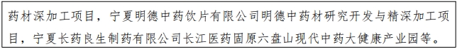 7. 中药材加工 。抢抓国家发展大健康产业时机,积极发展中成药和中药提取物生产,鼓励企业开发洁净饮片、新型饮片、中药配方颗粒等产品,支持新型复方制剂等疗效确切中药创新 产品研发 。推动以宁夏道地药材为主要原料的药膳、药妆和功能性日用品加快实现产业化。深化中药材“ 订单种植 ”模式,引导建设中药材标准化、规模化生产基地,加强质量追溯体系建设,打造企业引领、农户参与、社会支持、质量可控的融合发展模式。