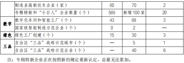 5. 融合发展不断深化 。 一大批轻工纺织企业应用物联网、 大数据、人工智能等先进数字技术, 积极建设数字车间和智能 工厂。厚生记建成国家级智能制造示范工厂,产线产能达到 3.6 万罐/小时; 恒丰纺织建立纺纱数字化平台,被评为国家级绿色工厂, 荣获高新技术企业、智能工厂、新型针织纱线创新研发基地等多项称号; 启元国药颗粒剂、丸剂、胶囊剂包装自动化 项目被认定为自治区机器人推广应用示范项目;大窑饮品建成年产 20 万吨碳酸饮料及果蔬汁智能生产线,获评自治区数字化车间、绿色工厂、智能工厂;德悦纺织 30万锭差别化新型纤维纺织全流程数字化车间、法福来食品高端大米深加工数字化车间等 一批智能工厂和数字化车间建成投产。截止 2022 年,建成数字化车间和智能工厂 46 家,培育自治区“专精特新”中小企业 531 家、“小巨人”企业11家,认定自治区制造业行业领先示范企业(产品) 19 个。