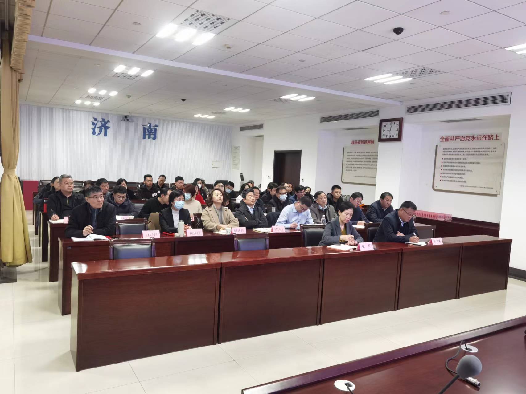 会上,青岛市科技局、滨州市科技局、济南高新区、青岛科技大学、山东省农业科学院、烟台新药创制山东省实验室、齐鲁制药集团有限公司作典型发言。会议开展了分组讨论,对报告和如何更好地推进2024年科技工作进行了深入交流。济南市在龙奥大厦设立分会场,市科技局领导班子成员,各区县(功能区)科技管理部门主要负责同志,部分驻济实验室、新型研发机构、科技型企业负责同志,机关各处室、局属各单位主要负责同志在济南分会场参加会议。