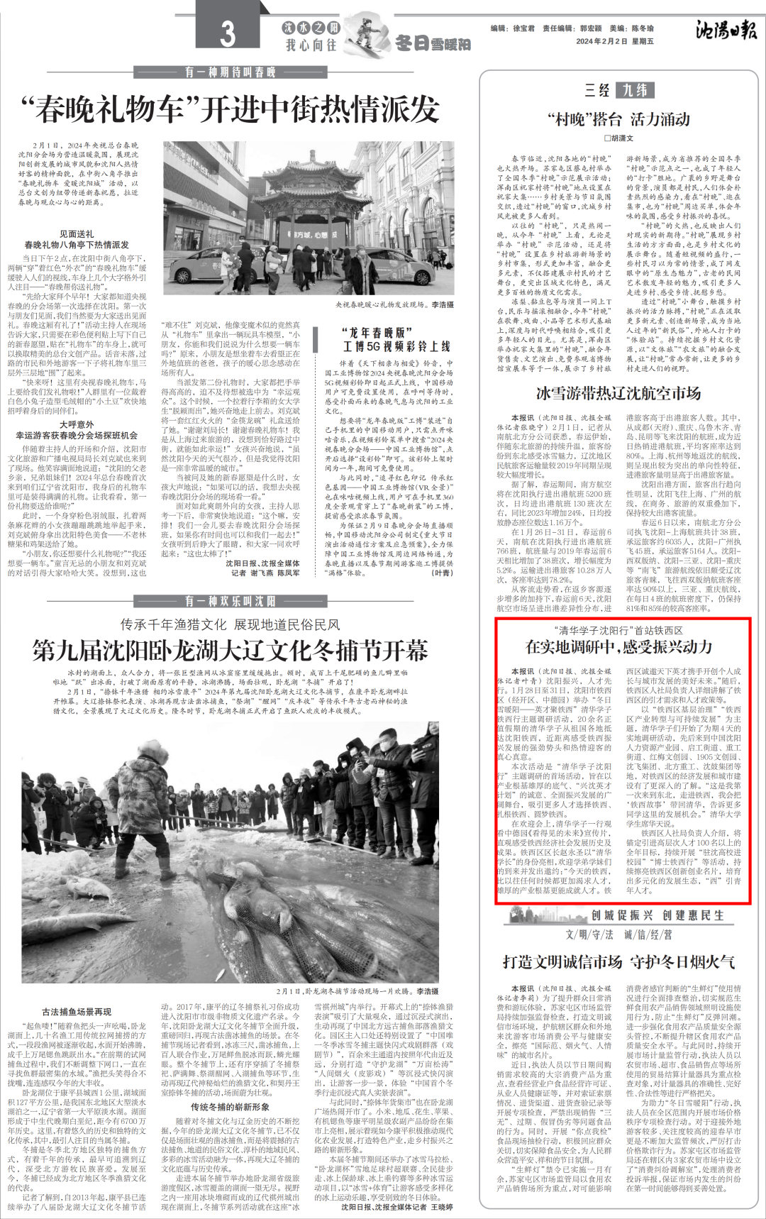本报讯(沈阳日报、沈报全媒体记者叶青)沈阳振兴,人才先行。1月28日至31日,沈阳市铁西区(经开区、中德园)举办“冬日雪暖阳——英才聚铁西”清华学子铁西行主题调研活动,20余名正值假期的清华学子从祖国各地抵达沈阳铁西,近距离感受铁西振兴发展的强劲势头和热情迎客的真心真意。