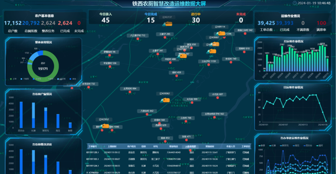 近期,铁西区按照“应改愿改尽改”的原则开展调查摸底,采用“三格式”室内水冲厕所改变传统旱厕脏乱差面貌。“农村改厕‘三分建、七分管’,我们在做好改厕质量提升的同时,突出抓好后续管护工作,着力解决农村改厕‘最后一公里’问题。”农业农村局改厕工作负责人告诉记者,他们实施了所有农户每年免费8次化粪池清掏服务,开发了“清掏工作智能化管理平台”。村民通过电话、微信小程序可以上报清掏需求,调度人员通过电脑端创建工单,作业人员在线抢单,确保2日内完成清掏。
