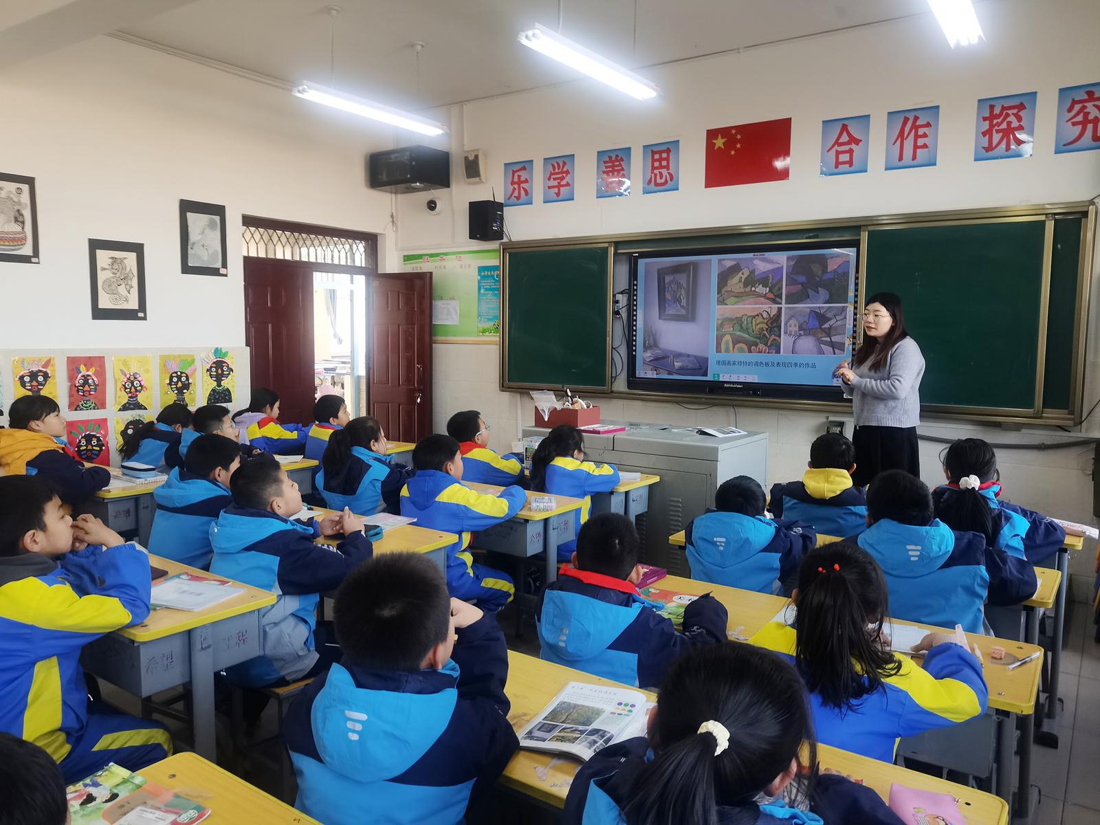 方莹老师给孩子们上美术课。