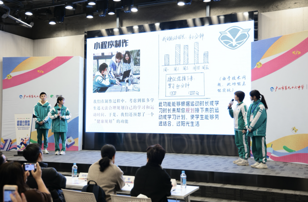 微信与广州九十七中在青少年素养教育的合作探索上由来已久。此前,九十七中就以“为照看学校生态园设计一个微信小程序”为任务,引导同学们将问题抽象为数学模型,为学校生态园的改造提供设计方案并制作出了实际可用的微信小程序,供日常照看生态园中的植物使用。而这一实践在全国首场小程序教育公开课上作为数字时代下的素养教育新经验分享出来,广州第九十七中学也率先成为微信小程序教育创新合作示范基地。