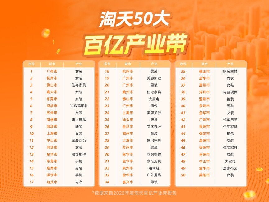 淘天集团发布首批50个百亿产业带,广州女装超千亿