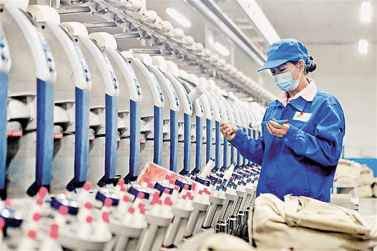 近日,宁夏恒达纺织科技股份有限公司,工人在生产线上检查产品质量。宁夏日报记者 马楠 摄