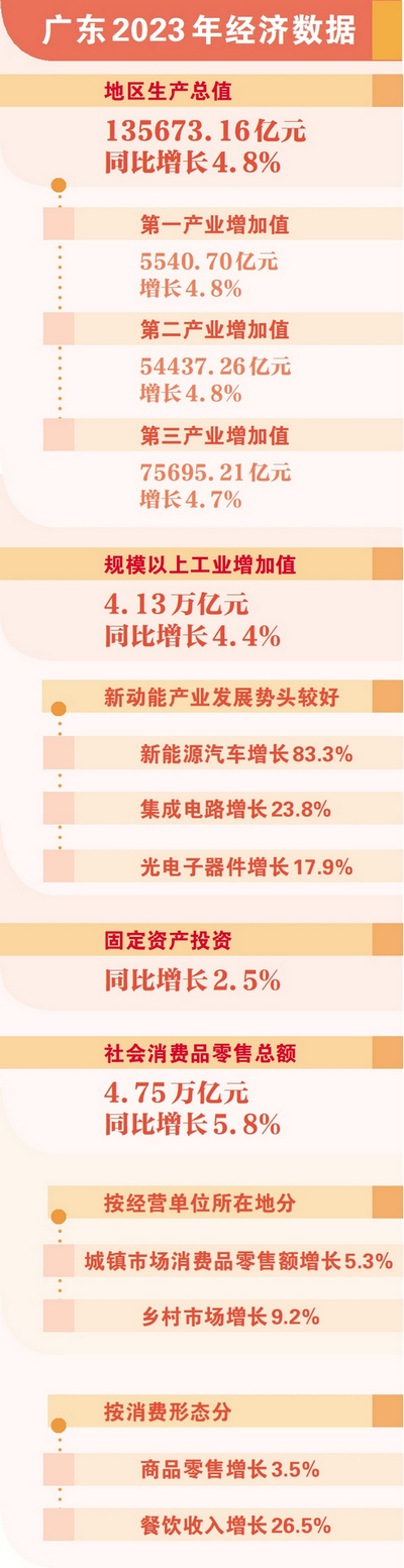 “2023年下半年,广东通过持续发放消费券的方式拉动内需,吸引大量游客推动文旅经济的发展。”谢宝剑表示,2024年,消费仍将成为拉动经济增长的主要动力,广东要在稳消费的同时全方位发力,继续保持经济高质量发展势头。
