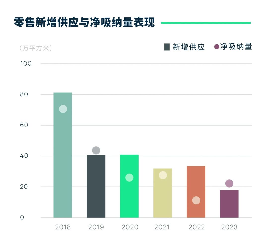 受惠于消费反弹,假日经济及展会经济所带来的旅游及商务人流的显著增长,2023年广州餐饮旅游消费逐步复苏。同时,广州市及各区级政府发放了多轮消费券,也提振了本地零售消费。世邦魏理仕最新发布的市场研究数据显示,2023年广州新开业优质项目减少,而吸纳则显著提速,带来了全市空置率的改善。广州优质零售物业市场全年录得三个项目,共18万平方米的新增供应,其中两个项目共12万平方米优质商业面积于2023年第四季度开业。而年内净吸纳量则达到22.2万平方米,实现了100.2%的同比上升。尽管受零星传统大型超市及百货闭店的影响,2023年新增供应仍有理想的开业水平,加上部分商场业态调改的完成,以及商场积极的去化举措带动下,推升了整体的净吸纳量水平。整体空置率从第二季度起连续三个季度下跌,按年下调了2.9个百分点至年末的8.3%。