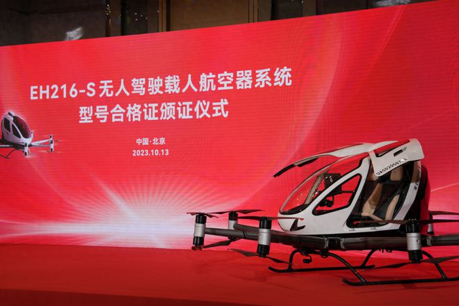 2023年10月13日,“亿航智能”获得中国民用航空局颁发的EH216-S型载人无人驾驶航空器系统型号合格证。这是全球载人eVTOL航空器中首个获得合格证的型号,标志着中国“低空经济”发展迈入了一个全新的发展阶段。