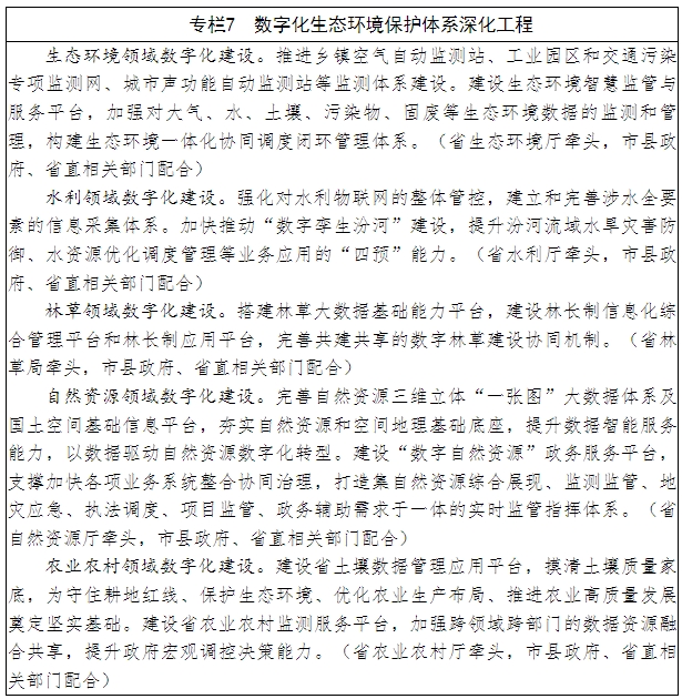 ——六大数字化履职能力体系。全面推进经济运行监测、市场监管、社会治理、公共服务、生态环境保护等政府履职能力和机关数字化能力建设。