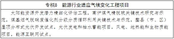 提高能源行业气候韧性。重点针对高温、冰冻、暴雨等极端天气气候事件,开展气候变化对能源生产、输储、利用的影响及风险评估。加快建设可再生能源存储调节设施,强化多元化智能化电网基础设施支撑,提升新型电力系统对高比例可再生能源的适应能力。加强气候变化对能源供需影响监测,强化智能电网应用以适应气候变化带来的用电峰谷波动。加强极端天气气候事件下输配电系统保护和应急调度,强化电力设备监测和巡视维护,推动储能、智能电网和数字化等技术应用,完善应急预案体系,提高电力基础设施安全风险预测预警、防御应对和快速恢复能力。(省能源局、省气象局等按职责分工负责)