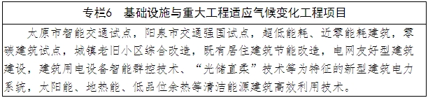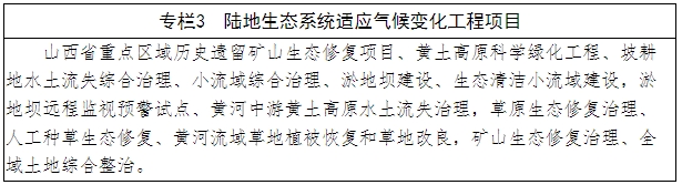 重点领域适应气候变化能力逐步提升。生态修复和保护力度进一步加强,太行山、吕梁山生态系统保护和修复有序推进,“七河”流域生态保护与修复成效显著。农业灌溉工程、大水网骨干工程和县域小水网工程有序开展,水资源优化配置能力和水旱灾害防御能力进一步提升。绿色交通示范工程、交通运输科技创新重点工程广泛开展,交通基础设施气候韧性有效增强。能源结构绿色转变,光伏、风电等装机规模不断扩大,产业化进程加速发展,能源系统结构与布局的气候适应性调整取得一定进展。