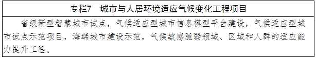 推进气候适应型城市建设。推动老旧小区综合改造,融入气候适应型改造内容。加大老旧供热设施、管网改造力度,加大太阳能、风能等气候资源在城市供热取暖上的应用。强化城镇污水集中处理设施碳减排措施,减少基础设施碳排放。增强交通工具、公交站台、轨道交通、停车场对大风、高温、暴雨、内涝等的防护能力。鼓励各设区市积极申报国家气候适应型城市试点。探索打造省级气候适应型新型智慧城市试点,将气候适应性原则纳入省级新型智慧城市试点建设,在智慧生活、智慧生产、智慧治理、智慧生态四大领域考虑气候变化因素。(省住建厅、省交通厅等按职责分工负责)