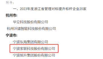 热烈祝贺宁波家联科技股份有限公司入选“2023年度浙江省管理对标提升标杆企业”名单!
