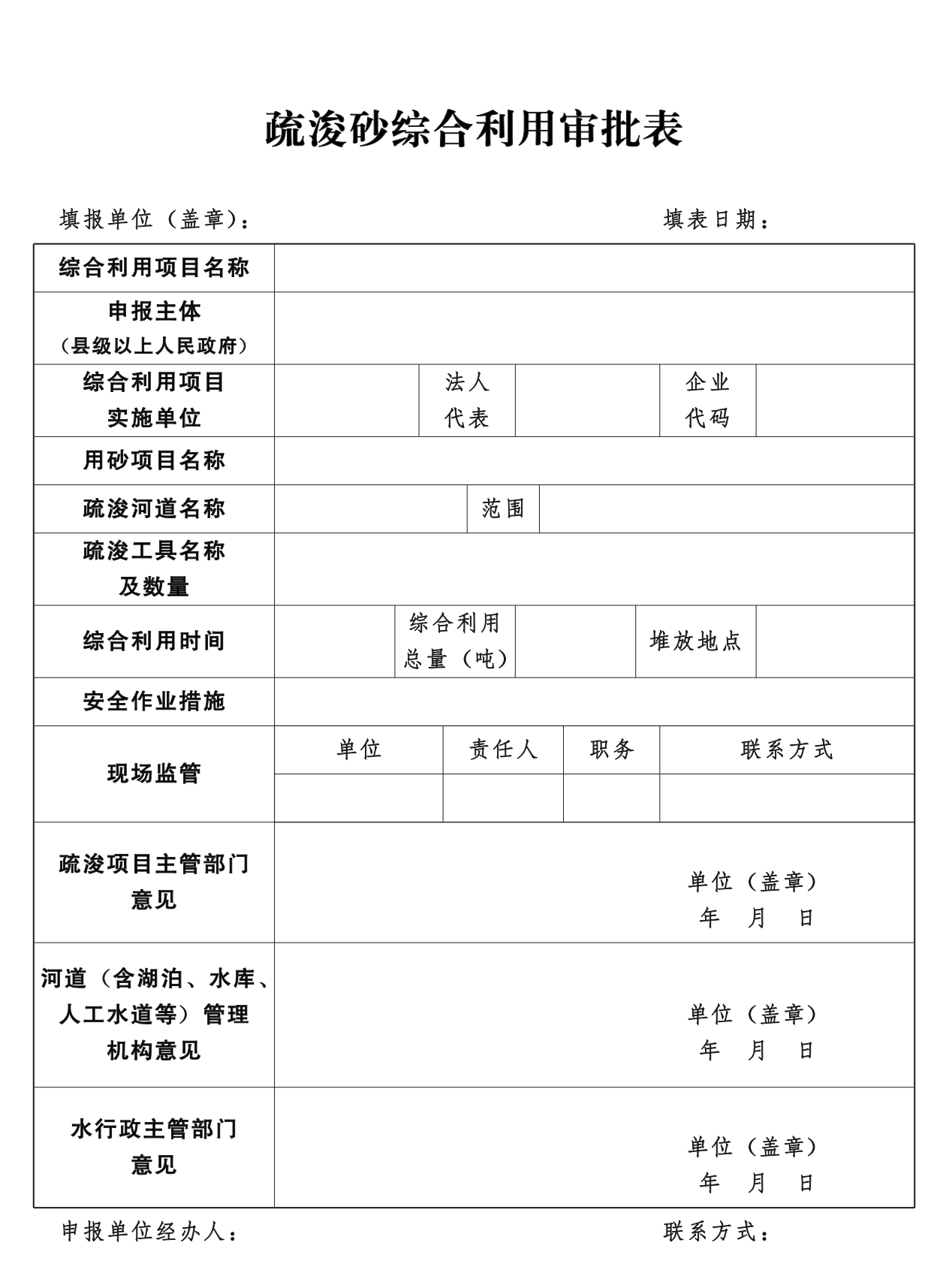 第八条 除长江、汉江外,其他河道单个疏浚砂综合利用项目综合利用量在3万吨(含)以内,且用砂项目明确的,不需编制疏浚砂综合利用实施方案,由市(州)或县(市、区)人民政府填报疏浚砂综合利用审批表(见附表),按审批程序报批及备案。具有审批权限的水行政主管部门应将审批表向社会公开。
