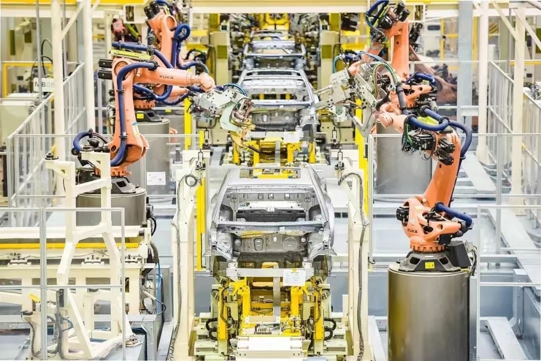 在广日电梯生产车间里,运输机器人来回穿梭,生产设备高速运转;广汽埃安第一智造中心,新能源汽车历经数字化、智能化生产工序,通过质检有序下线……