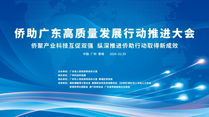 2月29日,由广东省人民政府侨务办公室主办的侨助广东高质量发展行动推进大会在广州举行。据悉,大会以“侨聚产业科技互促双强,纵深推进侨助行动取得新成效”为主题,旨在推动海外高层次人才聚焦产业和科技创新融合发展,促进产业与科技互促双强,助力广东高质量发展。
