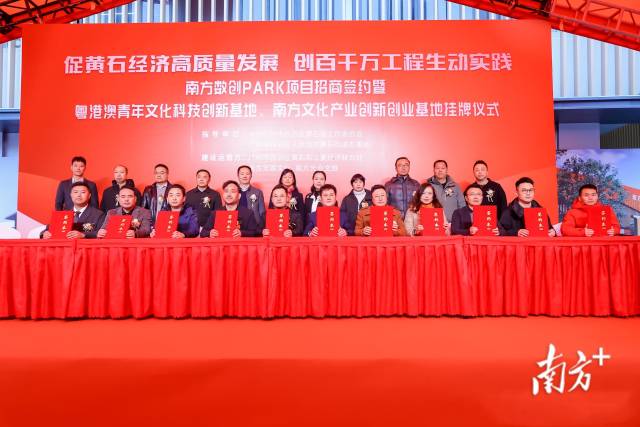 3月1日,以“促黄石经济产业高质量发展,创‘百千万工程’生动实践”为主题的南方数创PARK项目招商签约暨粤港澳青年文化科技创新基地、南方文化产业创新创业基地挂牌仪式在黄石街举行。据悉,南方数创PARK项目是2023年黄石街村级产业园区升级改造的成功案例,是该街全力推动“百千万工程”落地见效的生动实践。