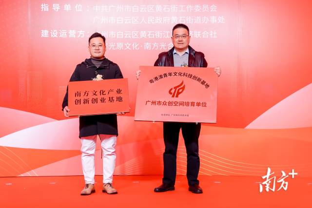 活动现场,南方数创PARK代表与进驻企业代表共同上台签署相关协议,同时,粤港澳青年文化科技创新基地、南方文化产业创新创业基地获授牌。