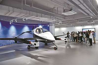 亿航智能展厅里展示的无人机产品吸引媒体和市民参观。杨耀烨 摄