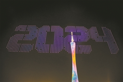 2月13日,花城广场,2024架无人机幻化出“2024”的字样。骆昌威 摄