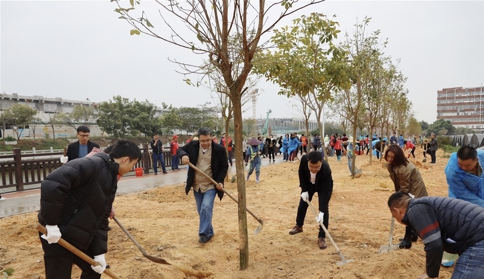 座谈活动后,唐力明带领区委组织部(区委人才工作局)、石碁镇等部门及26家企业负责人前往石碁镇广东万里碧道,开展“共建人才林·绿美番禺景”人才植树活动,联动广大人才、企业家力量,以行动参与推进乡村绿化和绿美番禺建设。